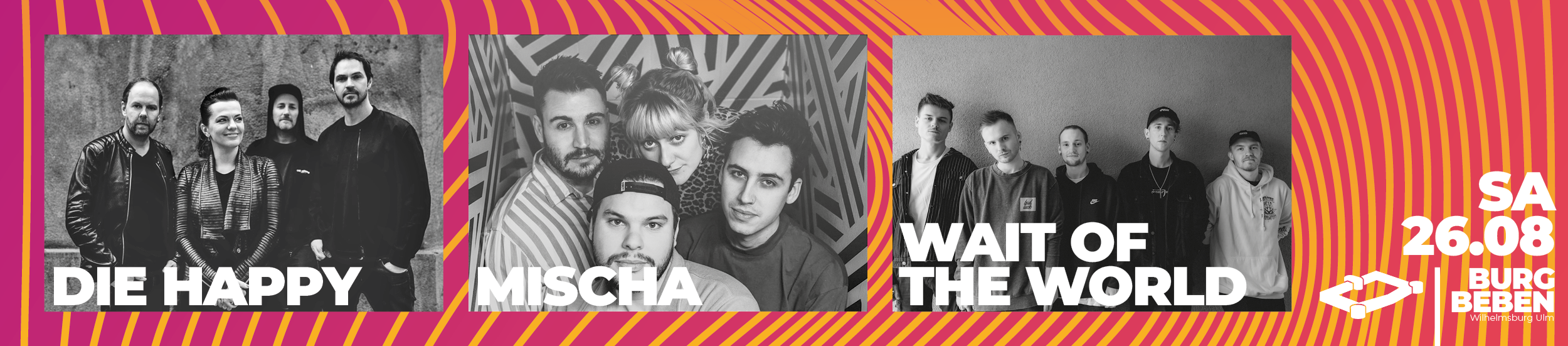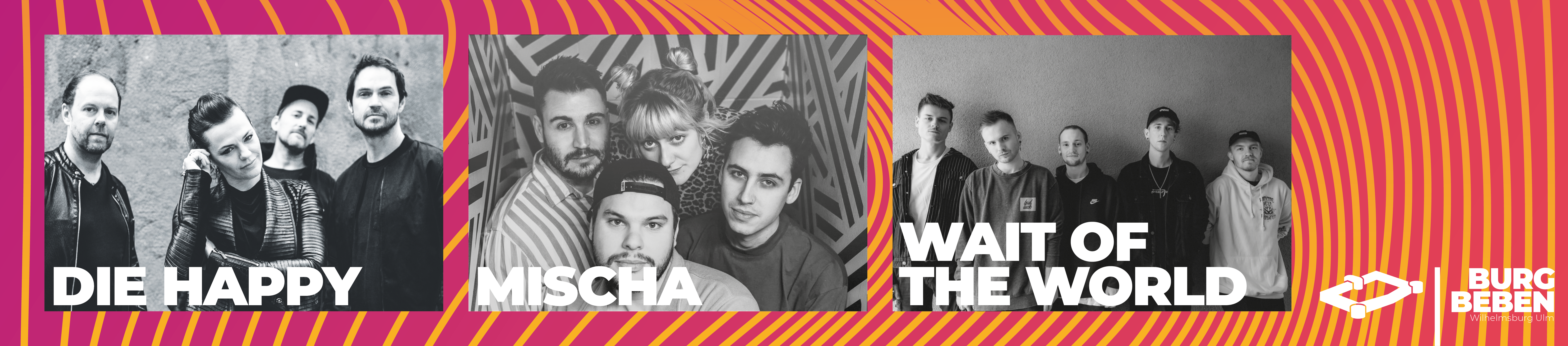 Zum Abschluss des Event- & Konzertsommers 2023 auf der Ulmer Wilhelmsburg bringen wir die Burg nochmal richtig zum Beben. Zum Saison-Ausklang bringen wir an zwei Abenden überregionale und regionale Acts auf die Bühne, das Highlight am Samstag den 26. August, ist die bereits 1993 in Ulm gegründete Rockband DIE HAPPY. Unterstützt werden die Ur-Ulmer an diesem Abend von der Münchner Indie-Pop & Alternative-Rock Band WAIT OF THE WORLD und der Biberacher Alternative-Pop-Rock-Band MISCHA.